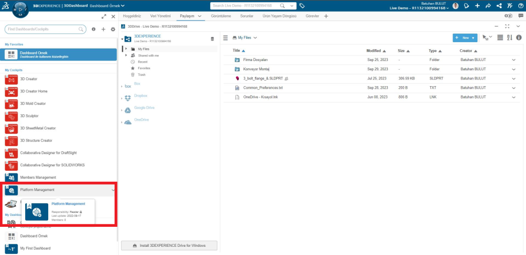 3DEXPERIENCE 3DDrive: Dış Kaynaklara Paylaşım İzni Verin