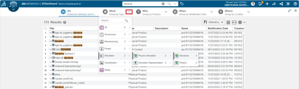 3DEXPERIENCE’ta Gelişmiş Arama Nasıl Kullanılır?