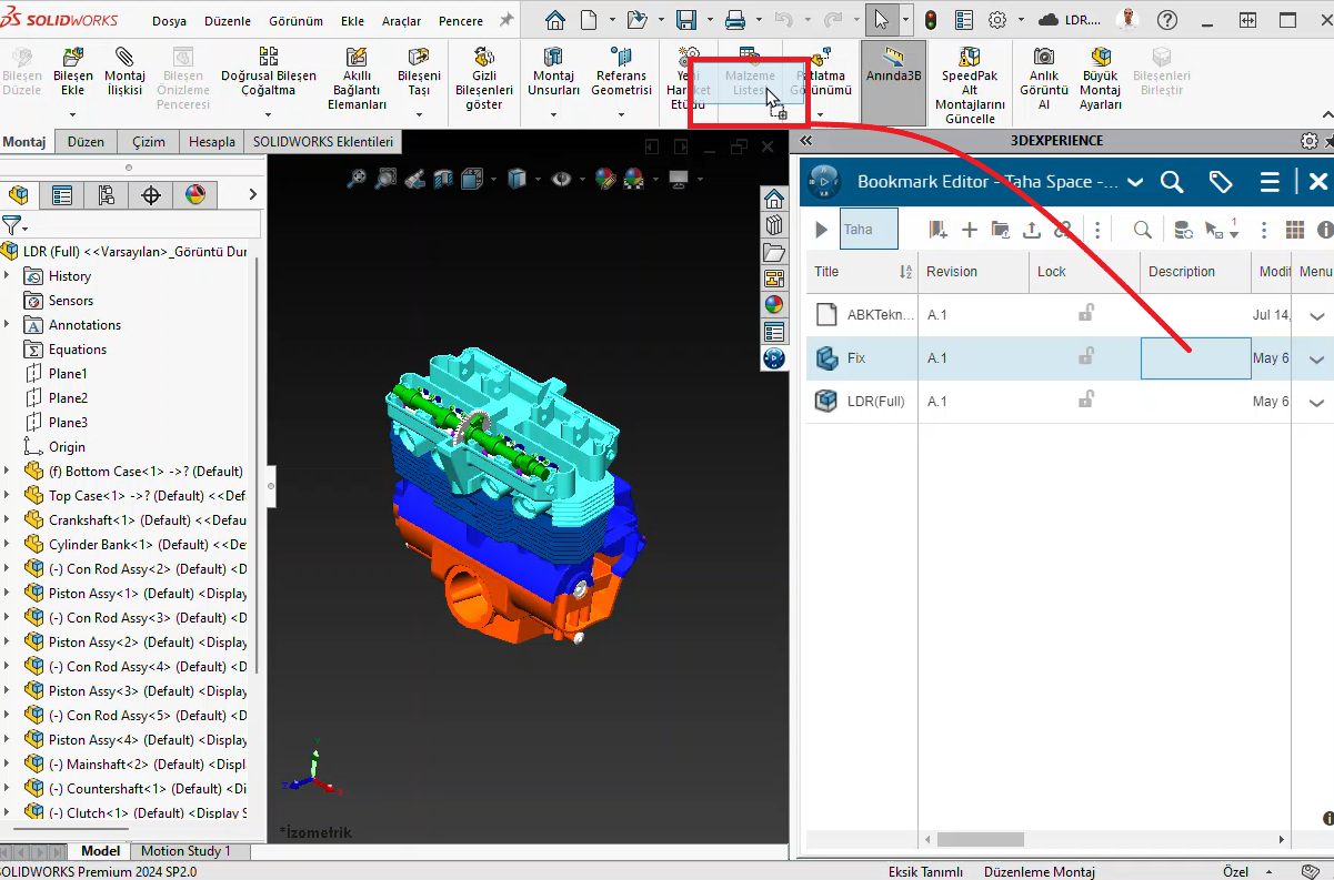 Pusulayı seçip Bookmark Editor uygulamasına girdiğinizde modeli sürükleyip SOLIDWORKS’te açabilirsiniz.