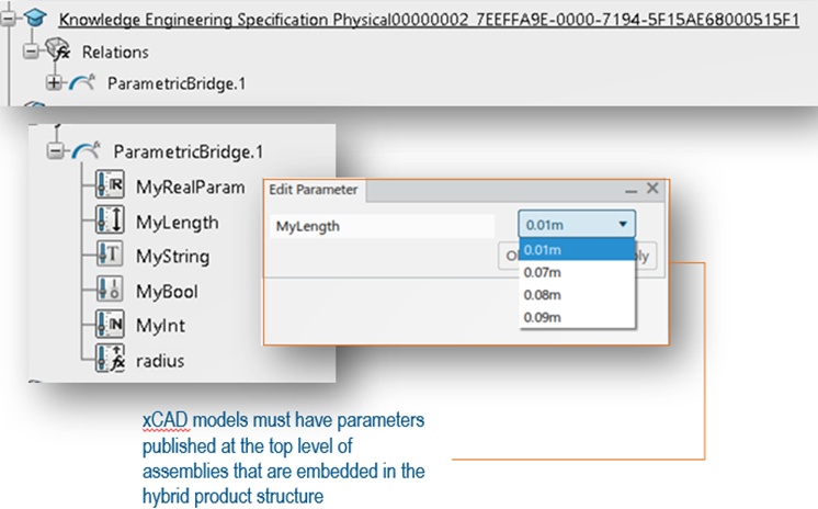 - Bu özellik, XCAD uygulamalarının çalışması için parametrik güdümlü değerlerini yayımlayabilmesini gerektirir.