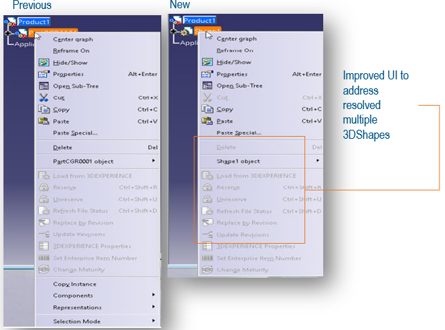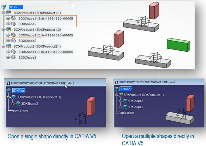 - CATIA V5’teki yeni bir kullanıcı arayüzü artık hepsinin aynı anda görülebildiği birden fazla 3DShape’yi görselleştirme yeteneğini destekliyor