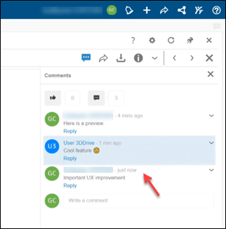 Bildirime tıklandığında, 3DDrive ortamı yorum paneli otomatik olarak seçilerek açılır