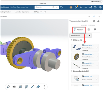 - 3DPlay widget’ında açılan 3DSpace içeriği arasındaki ilişkileri görüntüleme