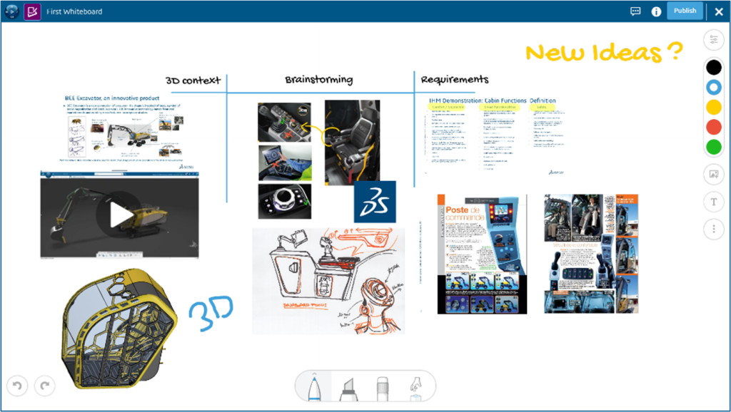 Ekipler, nerede bulunduklarına bakılmaksızın aynı etkileşimli beyaz tahtayı paylaşarak ürün tasarımları üzerinde sanal olarak beyin fırtınası yapar