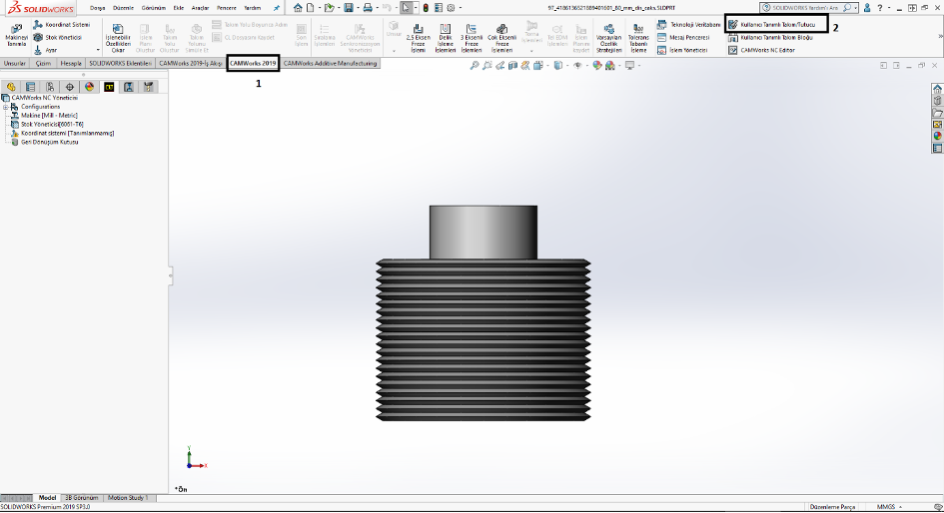 CAMWorks sekmesi içerisinde bulunan “Kullanıcı Tanımlı Takım\Tutucu” komutuna tıklıyoruz.