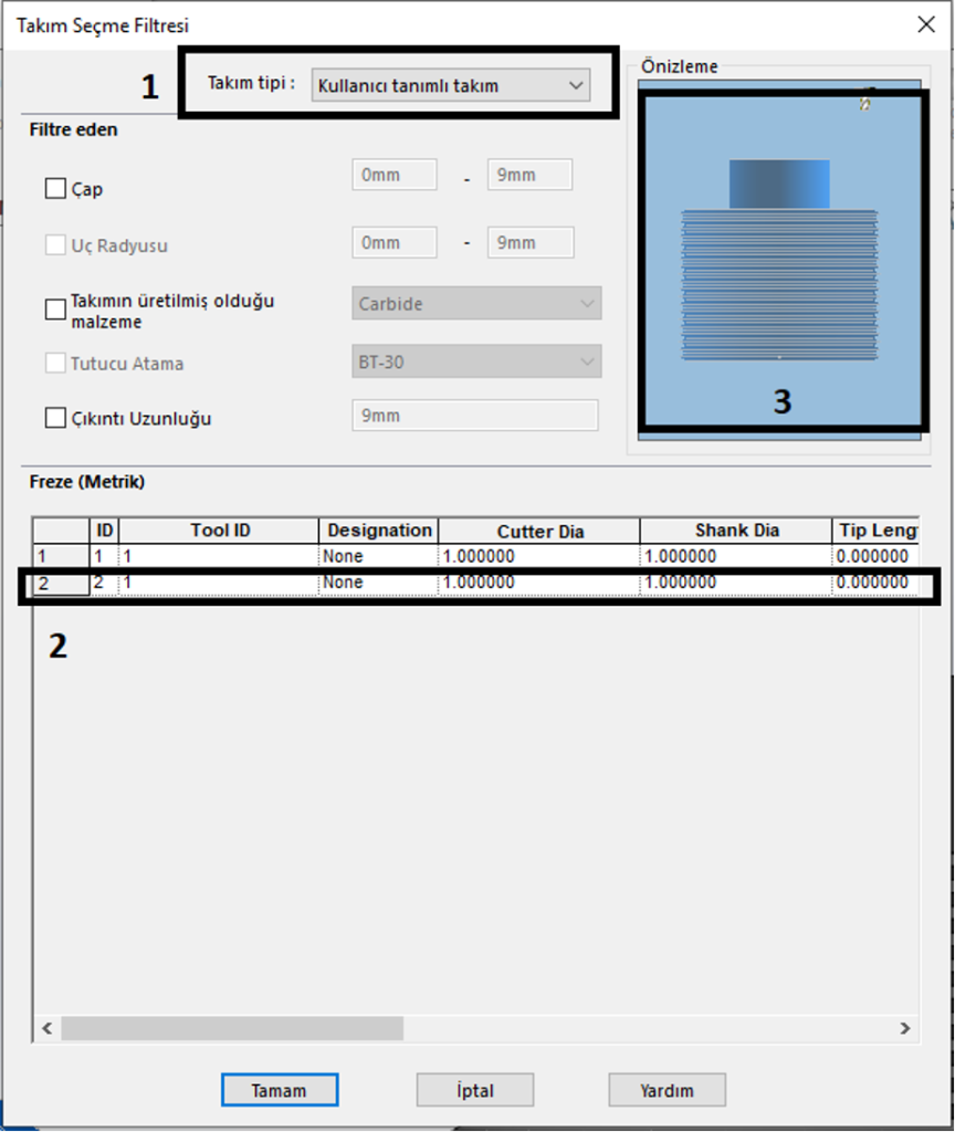 Adım 2 : Dosya Tipi seçeneği içerisinden kesici takımın türünü belirtiyoruz. Sonrasında kesici takıma bir isim vererek nereye kaydetmek istediğimizi belirtiyoruz.