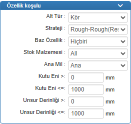 - Alt Tür, Baz Özellik, Ana Mil gibi her kategori için ayrı ayrı koşul tanımlamak gerekir. Aksi halde işlem planı oluşmayabilir.