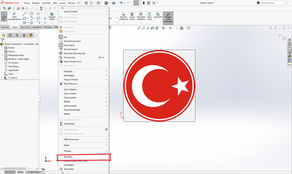 SOLIDWORKS Çizimine Eklenen Resimden Katı Oluşturma Öncelikle SOLIDWORKS açılış ekranından bir parça başlatarak başlayalım. Unsur ağacımızdan “ÖN DÜZLEM” içerisinde bir çizim başlatalım. Araçlar sekmesinden “Çizim Araçları” > “Çizim Resmi” adımlarını takip edelim. Açılacak ekrandan eklemek istediğimiz resmi seçelim. Çizim resmim karşıma ölçek çizgimle birlikte gelecektir. Daha sonrasında resmimi boyutlandırmak için ölçek çizgimi görseldeki gibi konumlandırıyorum […]