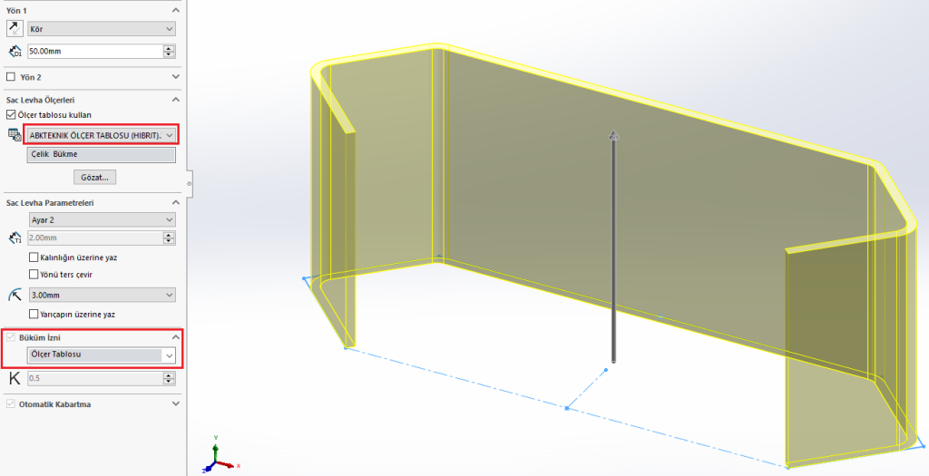SOLIDWORKS’te Sac Levha ile modelleme yaparken karşımıza Malzemenin Sac Levha Parametreleri, Sac Levha Ölçerleri ve manuel ayarlama seçenekleri çıkar. Modele malzeme atanmadığı zaman Ölçer Tabloları kullanılır ya da manuel ayarlama yapılır. Bu yazımızda; sık kullandığımız parametrelerimizi kolaylıkla çağırabilmek için SOLIDWORKS’te Ölçer Tabloları (Gauge Tables) oluşturmayı ele alacağız. SOLIDWORKS’te varsayılan olarak gelen bazı tablolar vardır. Ancak […]
