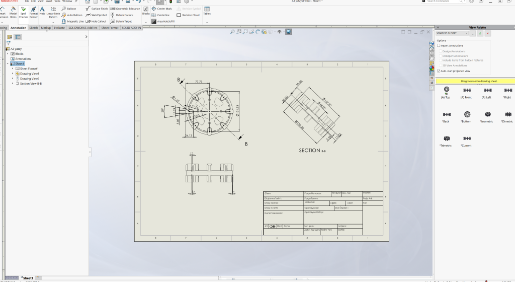 SOLIDWORKS üzerinde şablon oluşturma antet düzenleme ve çizgi yapılarını özelleştirme çalışma biçiminize göre düzenleye bilirsiniz. Parça çizimi, Montaj yapımı ve teknik resim şablonları dosya formatları ise; (.prtdot,.asmdot,.drwdot) diye isimlendirilir. Mevcut olan antet boyutları: A4, A3, A2, A1, A0 dosya formatı (.slddrt) TEKNİK RESİM BELGE OLUŞTURMA Yeni Teknik Resim şablonu oluşturmak için aşağıda bulunan görselde Drawing […]