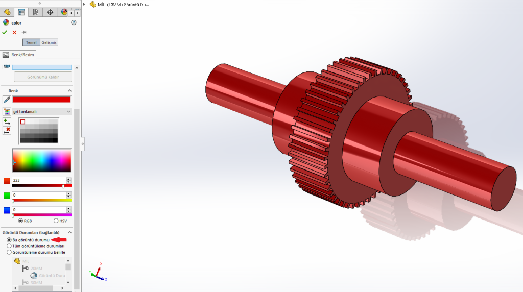 SOLIDWORKS VISUALIZE Parıldama Seçeneği SOLIDWORKS Visualize “Görünümler” sekmesine geldiğimizde model üzerine uygulanan görünümleri görebiliyoruz. Her görünümün kendine ait bir görünüm tipi bulunmaktadır (plastik, metal, … vb). Görünümden beklentimiz görünümü atadıktan sonra bir ışık kaynağı şeklinde parıldaması ise “Yayıcı” görünüm tipini kullanabiliriz. Bu görünüm tipini ayarladıktan sonra ‘sürükle-bırak’ yöntemiyle model üzerine uygulayabiliriz. Işık kaynağı şeklinde görünmesi […]