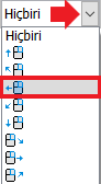 Komutu atama üzere hareket düğmesini seçmek için Seç sütunu hücresindeki açılır liste kullanılır.