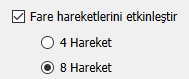 Fare Hareketleri kullanılmak istenmezse, “Fare Hareketlerini etkinleştir” onay işareti kaldırılmalıdır. Kullanılacak düğme sayısı 4 veya 8 olarak seçilebilir.