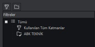 - Filtreler ekranında dosya sembolü ile katmanlar gruplandırılarak birden fazla katman oluşturulabilir.