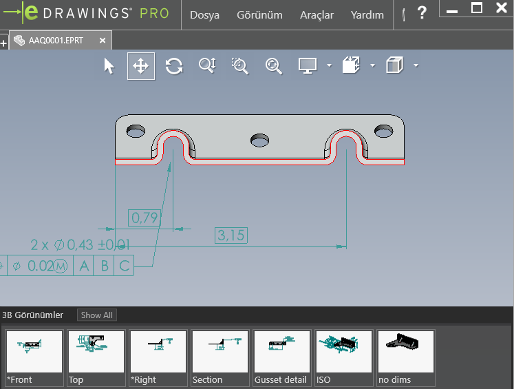 Bu dosya türlerinin hiçbirinin görüntülenmesi için SOLIDWORKS’ün kullanılmasını gerektirmez. Yani ürün üretim bilgileriniz (DimXpert/MBD Dimensions ile oluşturulmuş), tercih ettikleri CAD platformundan bağımsız olarak herkesle paylaşılabilir. Sonuç olarak, tasarım bilgileriniz yalnızca diğer SOLIDWORKS kullanıcılarıyla paylaşılmayacaksa, MBD eklentisi vazgeçilmez iş birliği araçları sağlar.