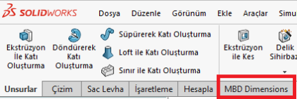 SOLIDWORKS MBD CommandManager Sekmesi