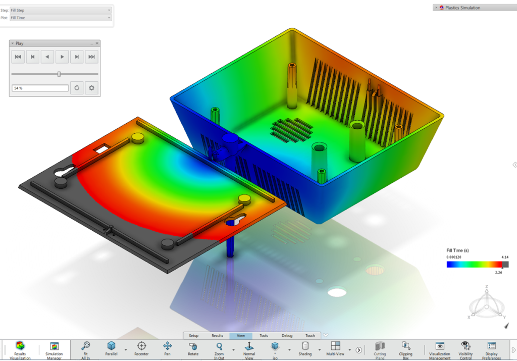Bununla, enjeksiyonlu kalıplama işleminin doldurma, ütüleme, çarpılma ve kalıp soğutma aşamalarını hızlı bir şekilde kurmak ve simüle etmek için rehberli bir iş akışı kullanabilirsiniz. Ürün tasarımcıları, kaynak çizgileri ve hava boşlukları gibi üretilebilirlik ve kalite unsurlarını değerlendirebilir.