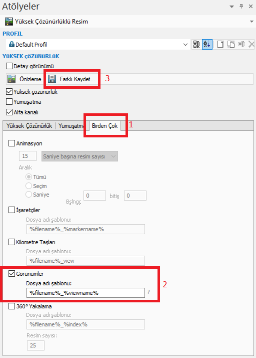 Sağ tarafta açılan pencereden “Birden Çok” seçeneğine tıklayarak “Görünümler”i aktif hale getirelim. Daha sonrasında “Farlı Kaydet” seçeneğine tıklayalım.