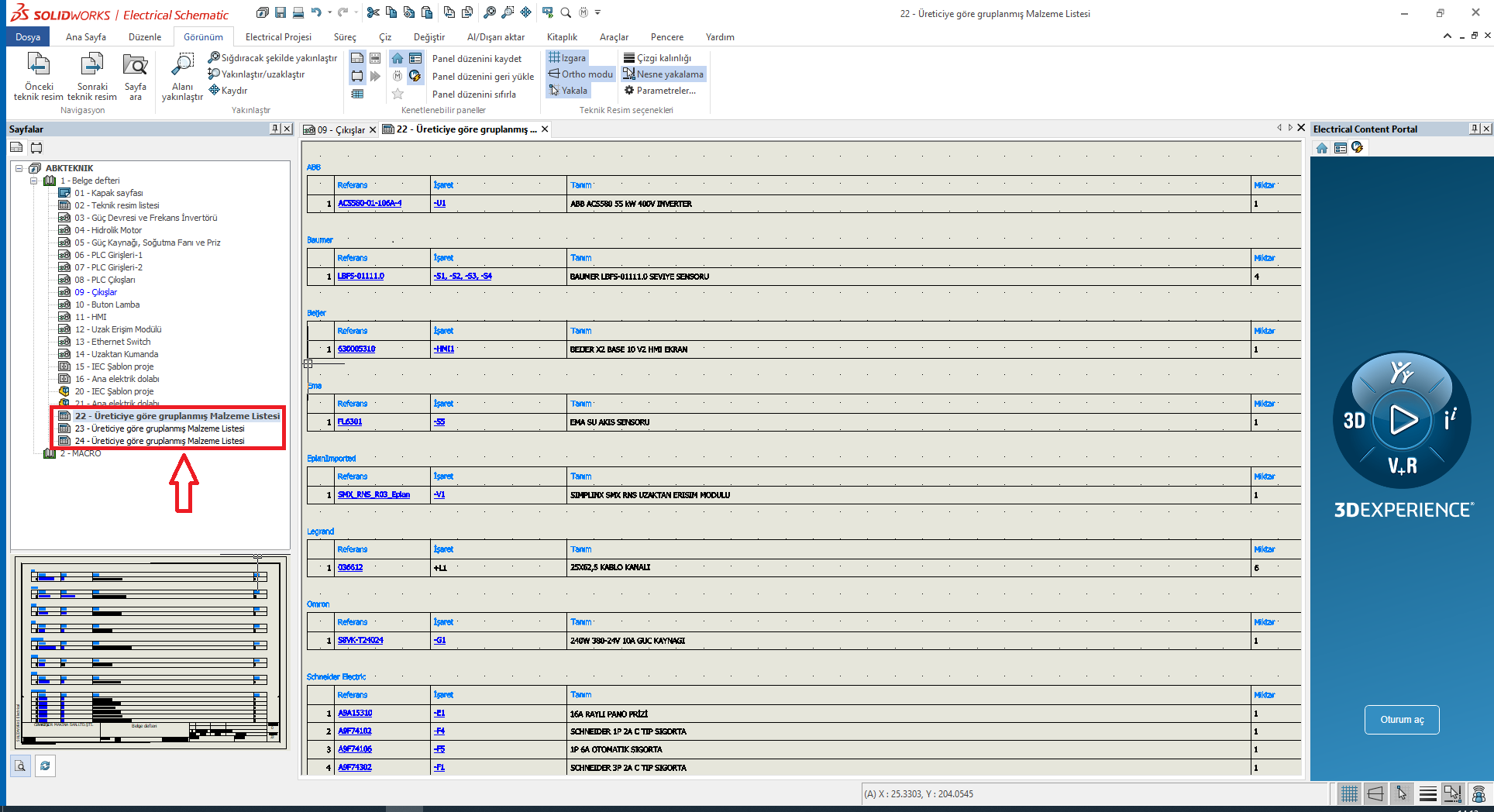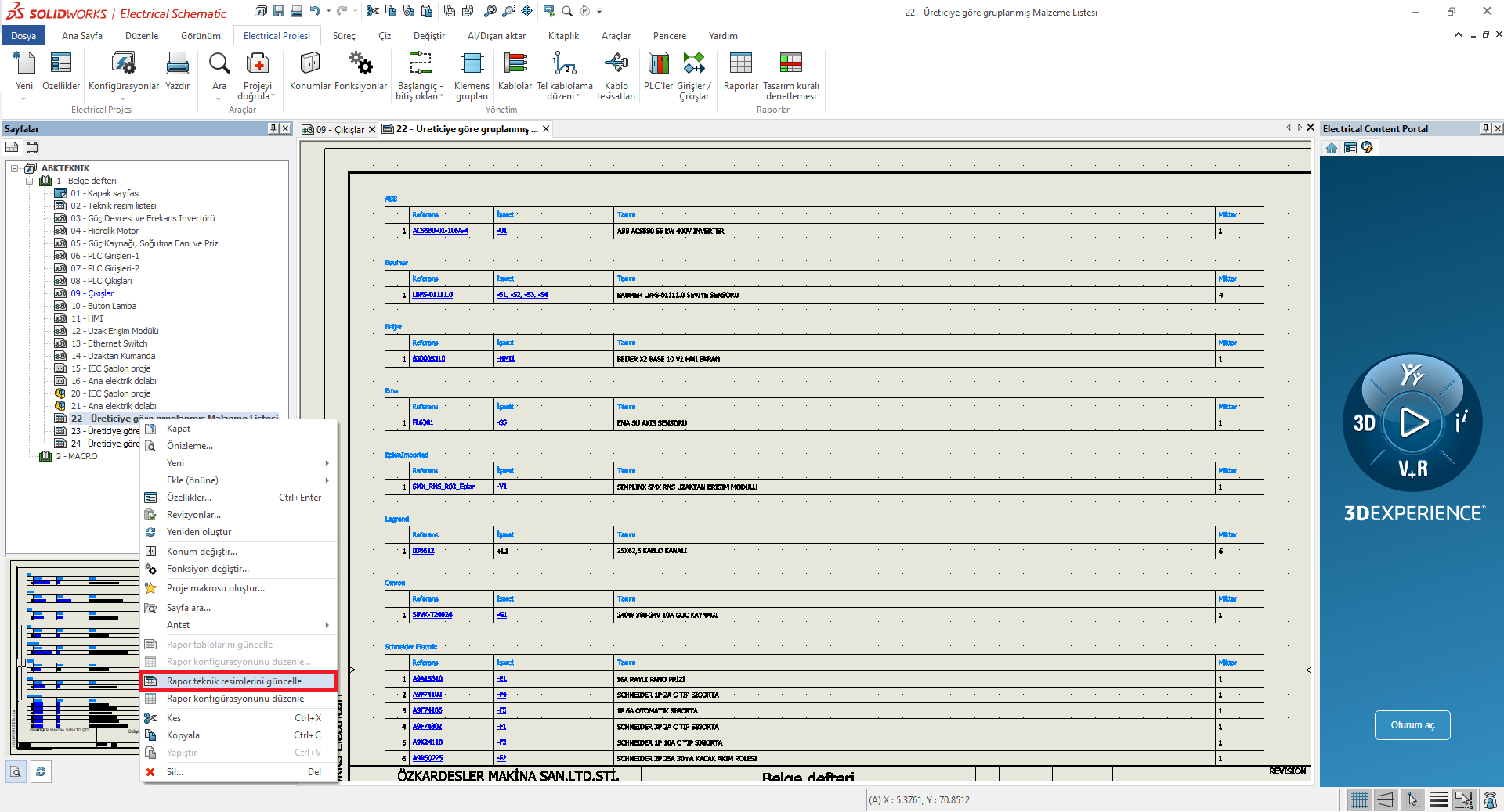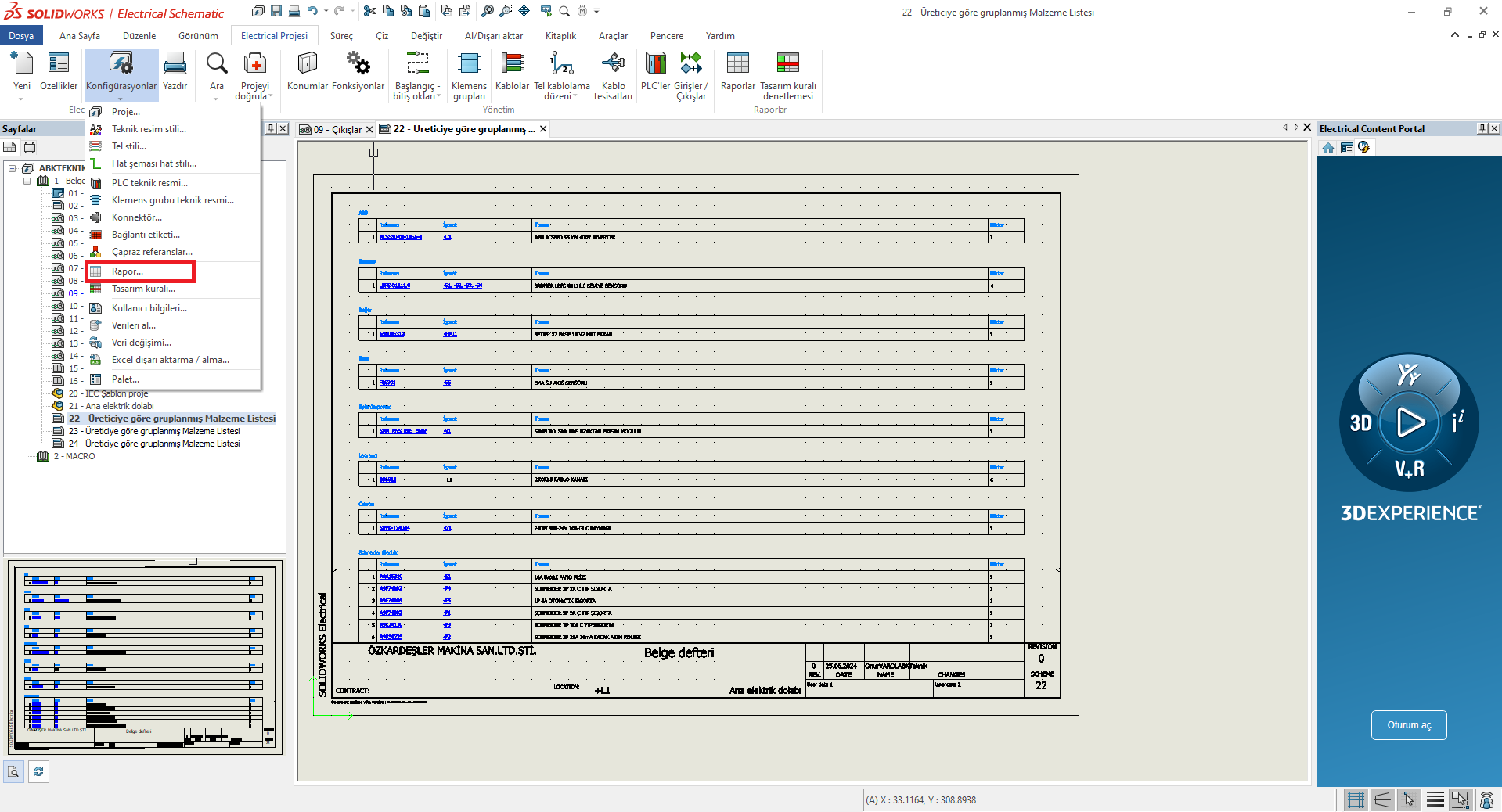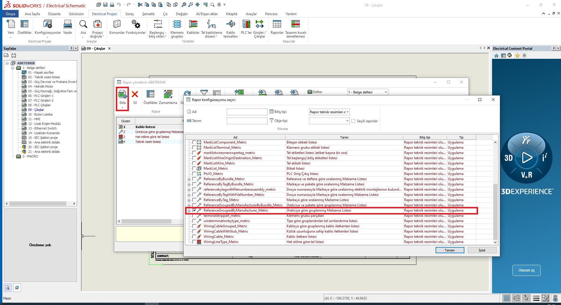 SOLIDWORKS ELECTRICAL MALZEME LİSTESİ İÇİN KONUM VE RAPOR AYARLARI