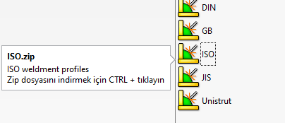 Profiller haricinde diğer kütüphaneleri de bu yöntemle indirip gerekli konumlara attığınızda, montaj ya da parça modelinizde kolaylıkla kullanabilirsiniz.