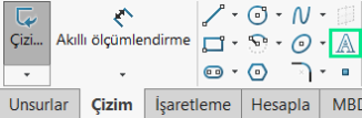 Öncelikle modellemek istediğimiz metni içeren bir çizime ihtiyacımız var. Metin düz bir zeminde olacaksa, doğrudan üzerinde bir çizim oluşturmamız yeterli olacaktır. Yüzeyimiz düz olmadığında da başka bir düzlem üzerinden hedeflenen yüzeye yansıtmamız mümkündür. Çizim sekmesinde bulunan Metin aracı, çizim metni oluşturur. Metnin konumu, varsayılan olarak ilk karakterin sol alt köşesine göre kontrol edilir.