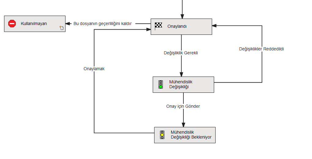 SOLIDWORKS PDM Professional, herhangi bir belgenin serbest bırakılması ve değiştirilmesini yönetmek için birden fazla iş akışı oluşturabilir. Bir belge ilk olarak kontrol edildiğinde, sınıflandırılır ve uygun iş akışına gönderilir. Belge, iş akışının durumları boyunca hareket ettikçe, okuma/yazma izinleri, görünürlük gibi tümü durumlar değişir. İş akışları basit akış şemaları gibi görünse de SOLIDWORKS PDM’nin belge kontrolünün gerçek temelidir. Karmaşık olabilir ve onaylar için bir organizasyonun dört bir yanından katkı sağlayıcıları içerebilirler.