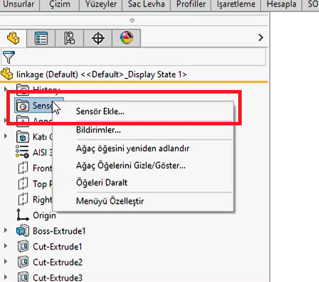 Şimdi SOLIDWORKS üzerinde bu sensörleri nasıl kullanabiliriz bunu inceleyelim.
