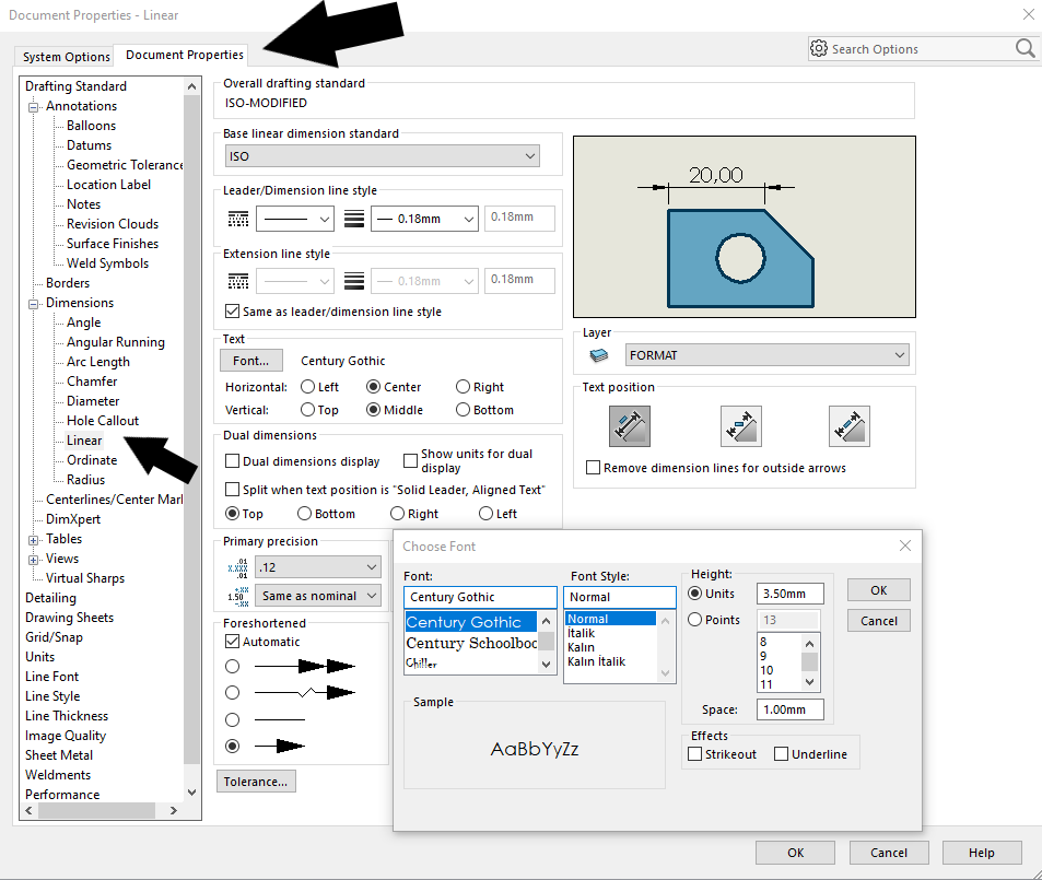 SOLIDWORKS üzerinde şablon oluşturma antet düzenleme ve çizgi yapılarını özelleştirme çalışma biçiminize göre düzenleye bilirsiniz.