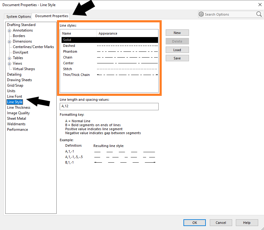 Teknik Resim şablonunda Çizgi Stili değiştirmek istediğimizde ise aşağı kısımda mevcut olan çizim stilleri içeriğinden ulaşabiliriz.