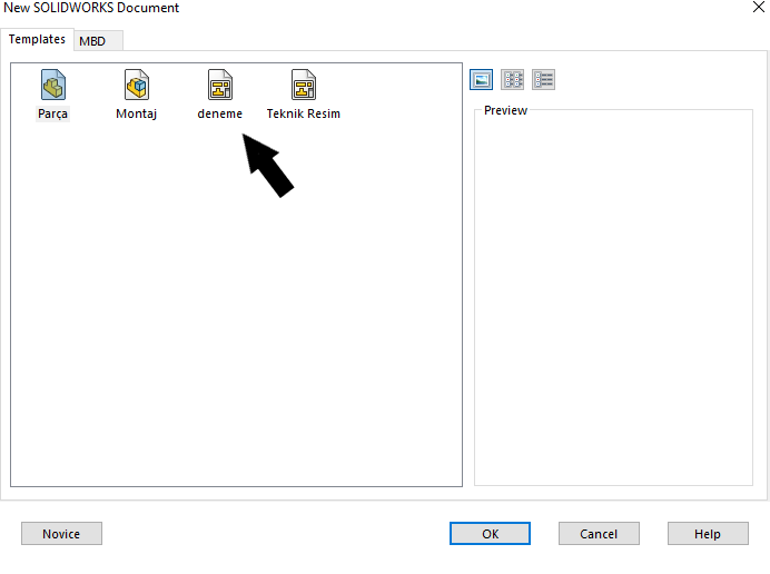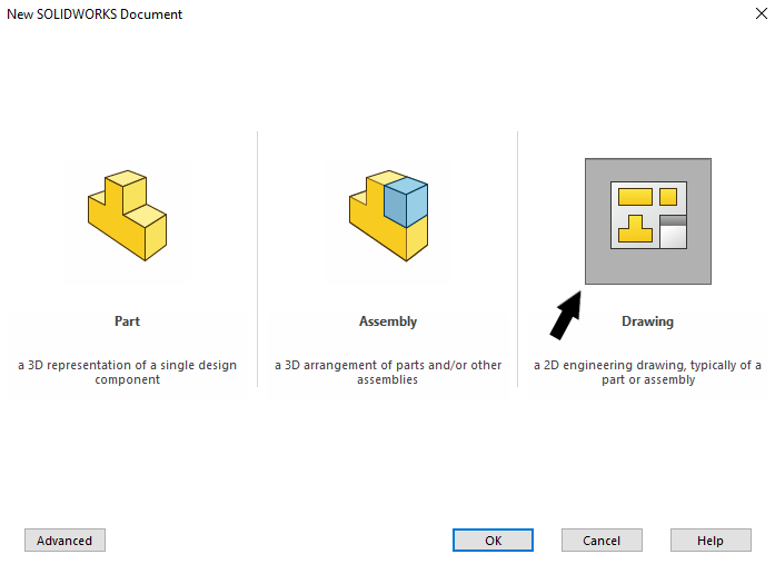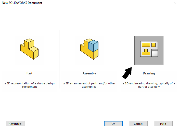 Yeni Teknik Resim şablonu oluşturmak için aşağıda bulunan görselde Drawing (Teknik Resim) kısmını seçiniz.