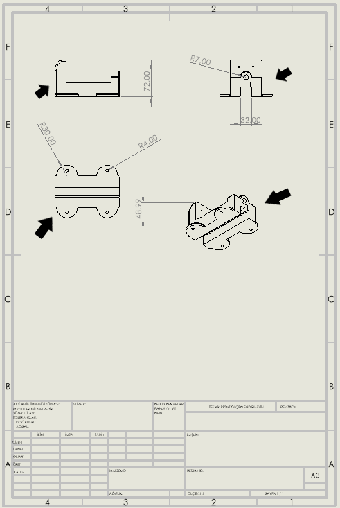 SOLIDWORKS için kullanıma hazır teknik resim şablon ve antetli kağıtları ücretsiz indirmek için bağlantıya tıklayın.