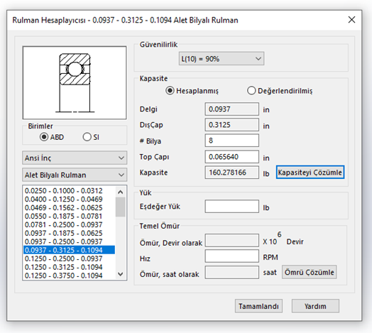 SOLIDWORKS Toolbox Rulman Hesaplayıcı