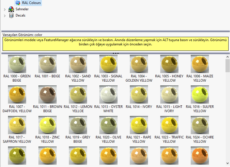 SOLIDWORKS’te RAL Kodlarıyla Görünüm Oluşturma