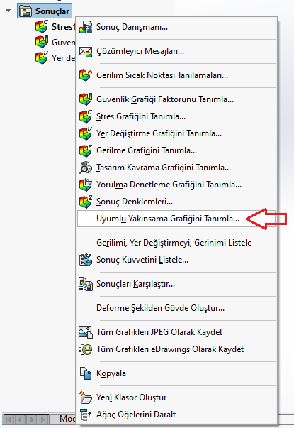 Sonuçlar klasörüne sağ tıklanarak Uyarlanabilir Yakınsama Grafiği tanımlanabilir.