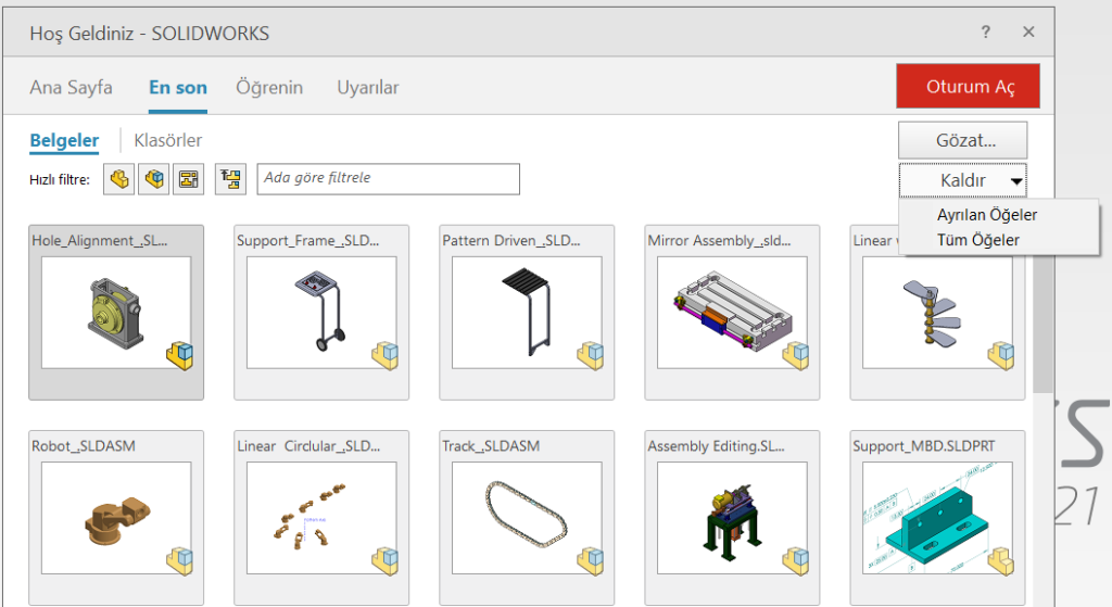 SOLIDWORKS “En son” Belgelerinin Açılmaması SOLIDWORKS içerisinde kullanılabilecek çok fazla kısayol mevcut. Bunların bir kısmı kullanılırken bir kısmı henüz bilinmiyor. Bu bilinmeyenlerden bir tanesi henüz herhangi bir parça/montaj veya teknik resim dosyası açmadan gelen anasayfa ekranında “En son” sayfası. Bu sayfaya ulaşmanın birden fazla yolu mevcut. Ancak kısayol olarak klavyeden “R” tuşuna bastığınızda “En son” […]